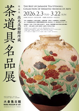 2026年2月3日(火)~3月22日(日)*前期:2月3日(火)~2月23日(日)後期:2月25日(火)~3月22日(日) 大倉集古館は日本初の財団法人の私立美術館として1917年に大倉喜八郎に創設されて以来、東洋・日本美術の作品の収集・保存・公開に努め、様々なテーマで展覧会を開催してまいりました。 そしてこのたび、当館では2025年度の特別展として茶の湯に関する展覧会を開催することとなりました。茶の湯の美術は日本美術の中にあって、その一翼を担っている不可欠な分野であり、そこで使われる道具類は、絵画・書跡・陶磁・金工・漆工・木竹工などあらゆる分野にまたがっております。 本展覧会では、出光美術館が所蔵する多くの名品の中から、茶道具を構成する多種多様な約70件の作品を通して、日本美術を横断的に鑑賞する機会をご提供いたします。